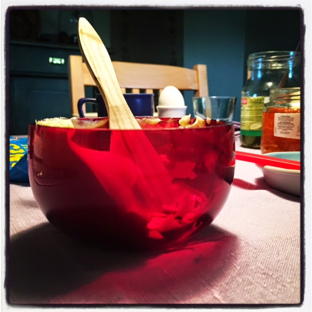 Och så nu på morgonen, just som jag håller på med frukosten.