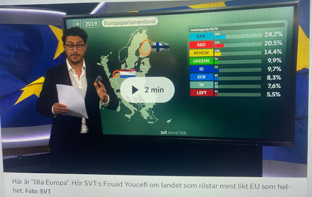 Dagen efter EU-valet sitter vi som vanligt och äter frukost framför tv:n. Idag SVT och inslag med suveräne Fouad Youcefi som kallats hem från korrespondentjobbet i USA och är snabbare än all teknik .., och pv säger ...."jaa du .., där hade det blivit många fel om jag skulle gjort detta!"